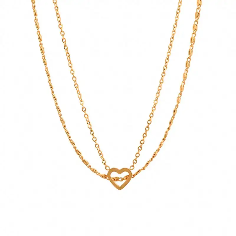 Delicate Fashion Trendy Double Layers Box Chain Link Necklace Heart Charm Pendant Stainless Steel 18K Gold Plated Romantic Fancy